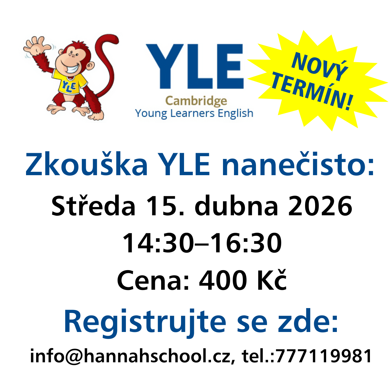 Zkoušky Young Learners (YLE) jsou k dispozici ve třech úrovních – Starters, Movers a Flyers.zkouška motivuje děti ke studiu angličtiny již od malička a vytváří pozitivní vztah k jazykovým zkouškám.